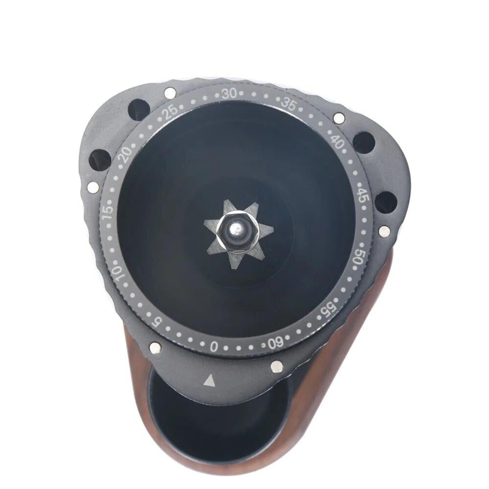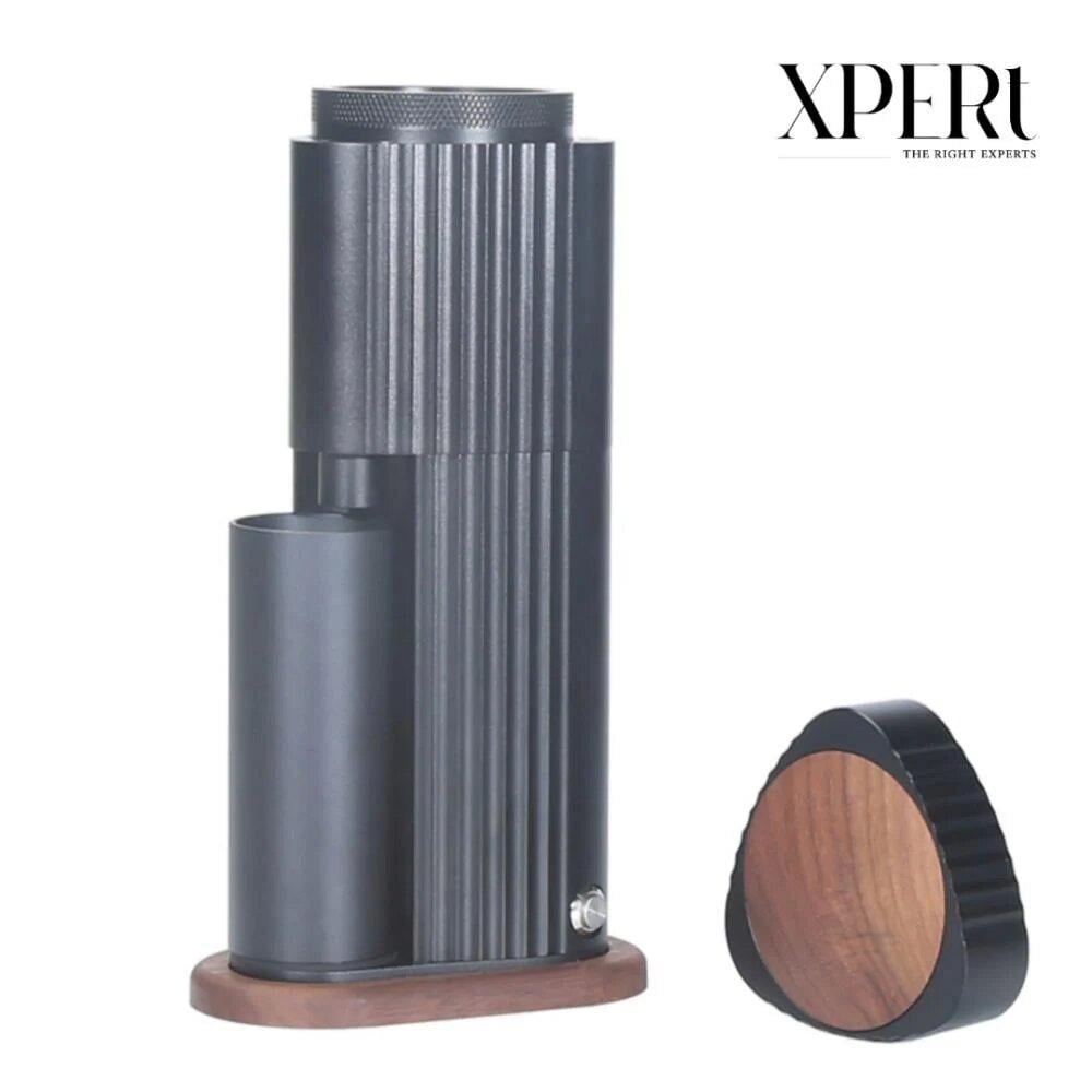مطحنة القهوة الكهربائية من XPERt مصنوعة من الألومنيوم عالي الجودة مع لمسات خشبية فاخرة من خشب الجوز وتصميم الجسم المثلث الأكثر جمالاً , تم تصنيعها باستخدام مواد من الألمنيوم والستانلس ستيل ذو جودة عالية لتوفير لمسة نهائية فاخرة ورائعة ومتينة معاً.