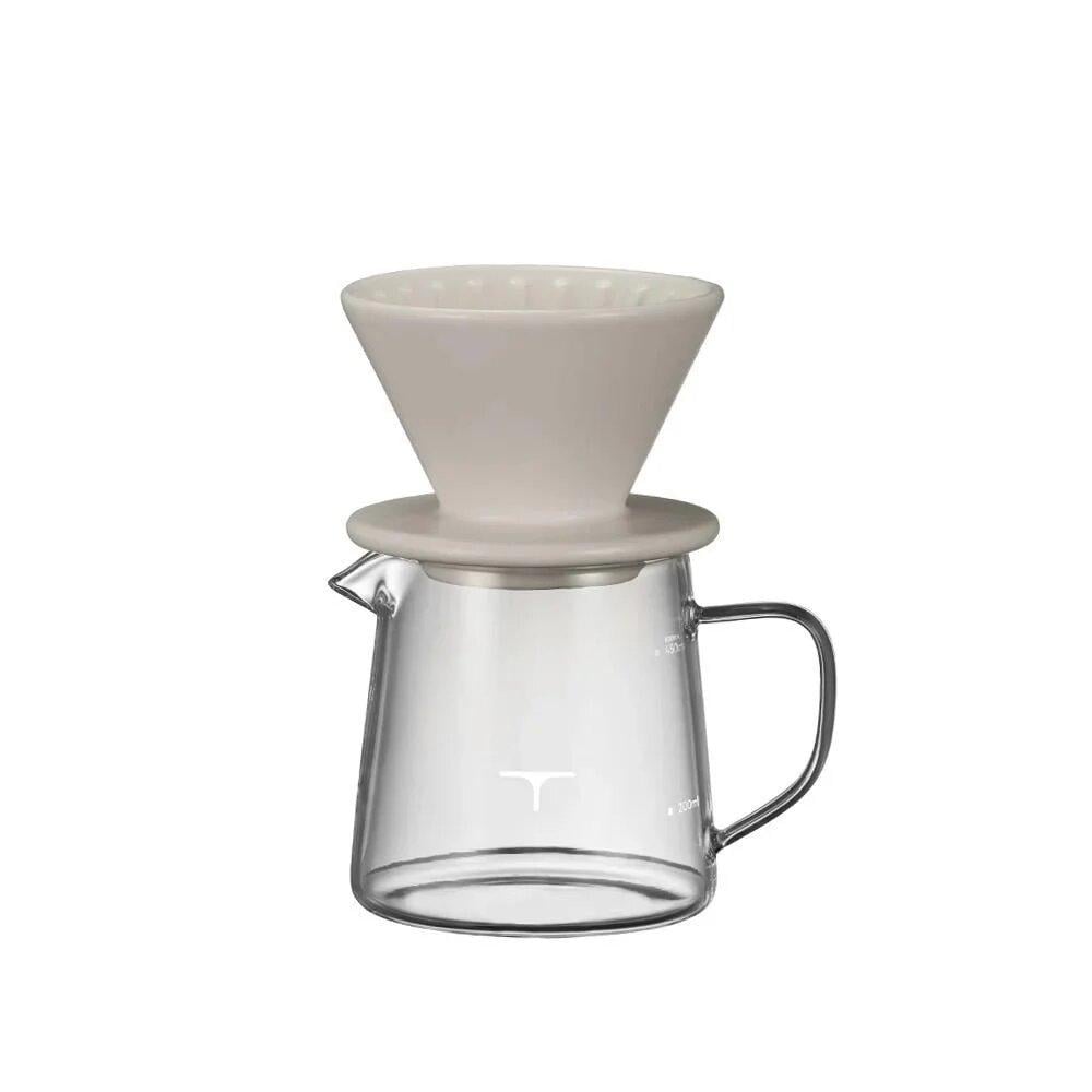 طقم التقطير01 ( 2 أكواب) من تاش تم تصميم هذا الطقم بشكل أنيق وعملي لجمع لك كل ما تحتاجه من قمع تقطير وسيرفر زجاجي لتحضير قهوتك بسهولة.